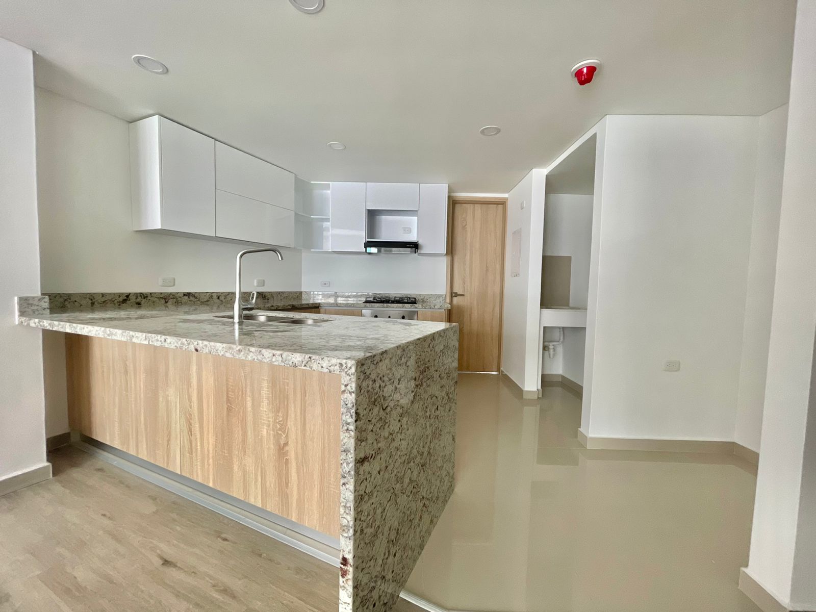 Balcón con hermosa vista , alcoba principal con baño y vestier, dos alcobas auxiliares, estar de alcobas, baño social, sala comedor, cocina, zona de labores, alcoba y baño de servicio, un parqueadero. Edificio residencial con amplias zonas comunes, piscina, bbq, gimnasio, jacuzzi, sky bar, salón social.