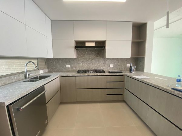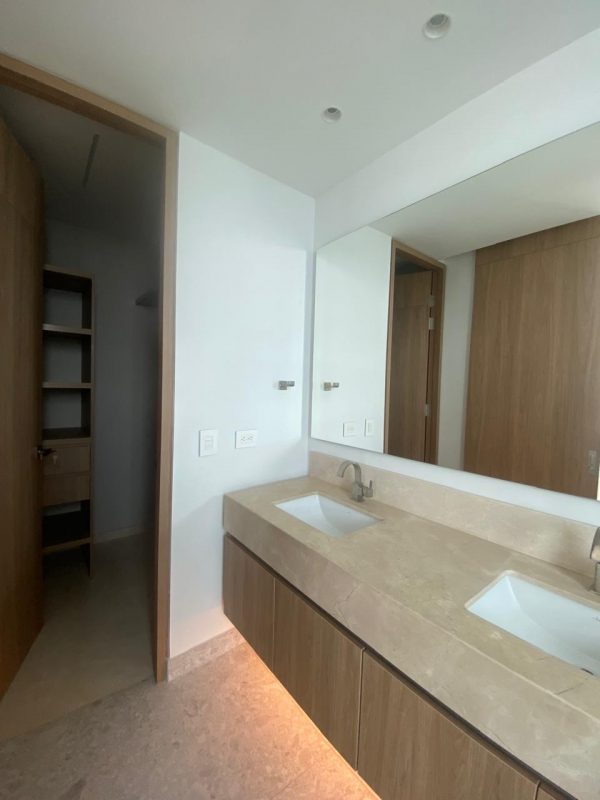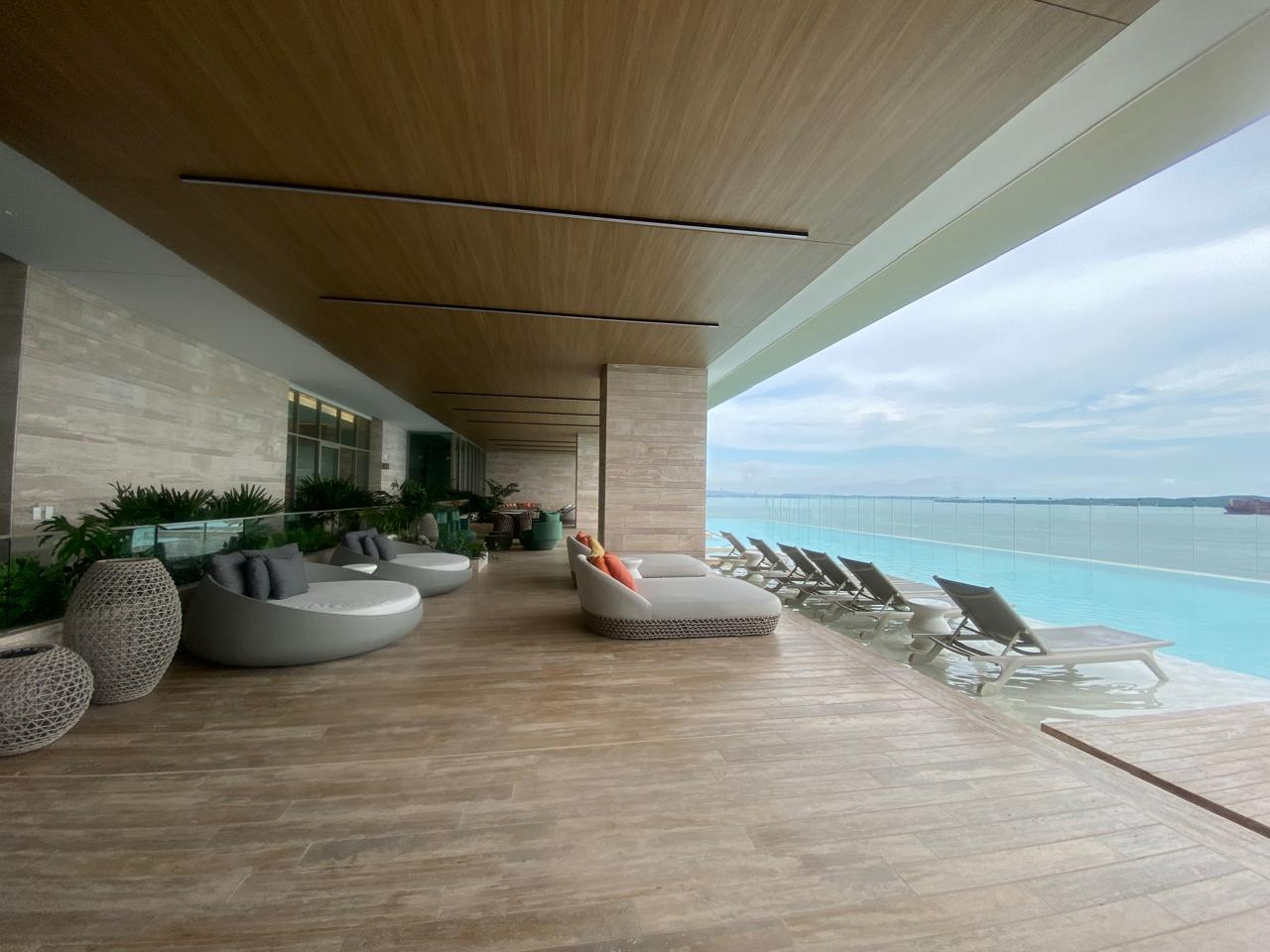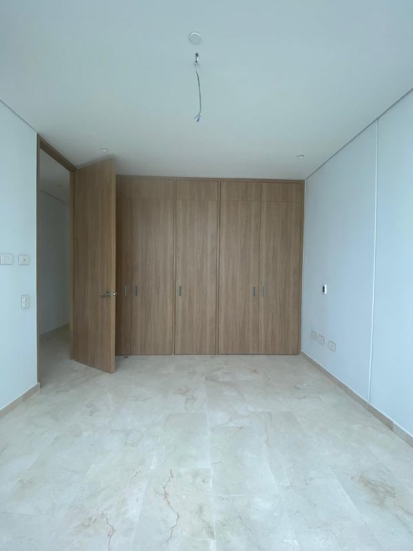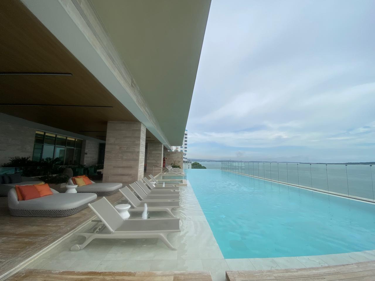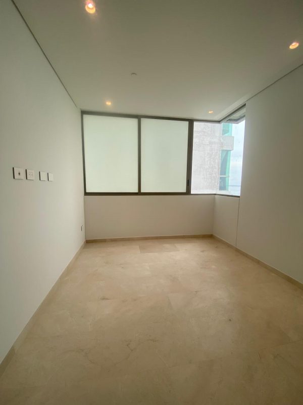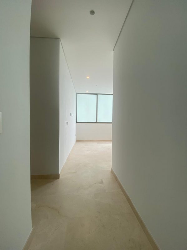 Apartamento de lujo para estrenar frente al mar, con vistas inigualables al mar y la Isla de Tierra Bomba, a pocos pasos de la playa y del paseo peatonal de la bahía. Consta de balcón con vista directa a la playa, tres modernas alcobas con baño interno, sala amplia, comedor, cocina equipada con los mejores electrodomésticos, con lavavajillas, baño social, cuarto y baño del servicio, zona de labores, pisos en mármol, 2 parqueaderos y depósito.